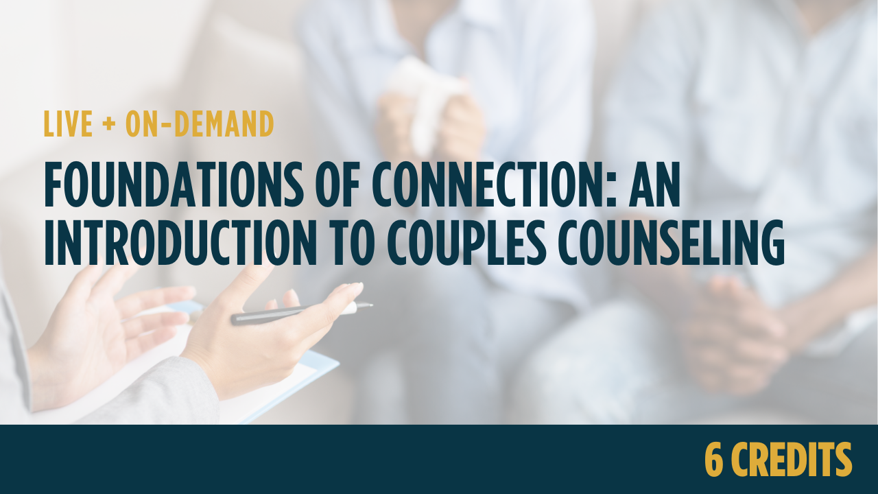 Intended Audience: Mental health clinicians (LCSWs, LICSWs, LMFTs, LPCs, LCMHCs, psychologists, school counselors, interns, etc.) and other mental health professionals seeking to expand their skills in working with couples.
